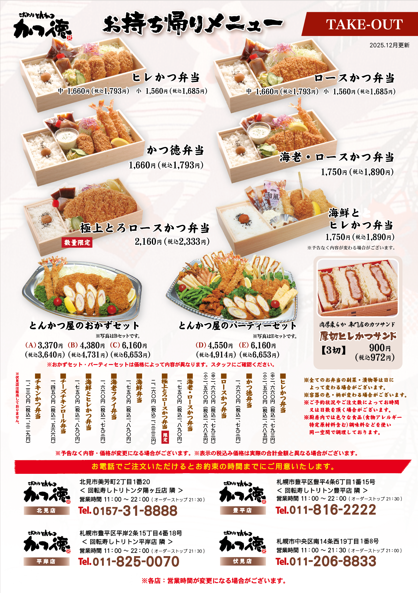揚げたてサクサクの極上とんかつをご自宅や職場でお楽しみいただけます。 さらに「お持帰りWeb予約サービス」のご利用で、好きな時間に待ち時間なしで受け取りが可能です! スマートフォンで簡単に予約可能です。お持帰りの際は是非ご利用ください。